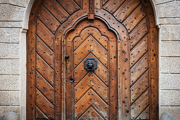 There’s an emphasis on negative space rather than ornamental embellishment, and the overall form and structure allows the eye to take pause. Negative spaces are achieved through cut-outs or recessed panels, allowing for interesting plays of light and shadow on the door’s surface.