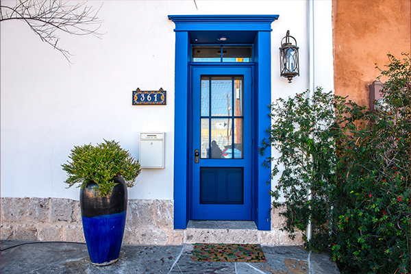 Colourful and vibrant doors not only reflect your personality but also add a pop of colour to the entryway, making for a warm, welcoming atmosphere.  Add a touch of cheer to the entrance, with a lovely painted front door!  On a practical note, it’s important to choose high-quality paint that is durable and resistant to moisture and temperature changes, to ensure the long life of your Indian door design.