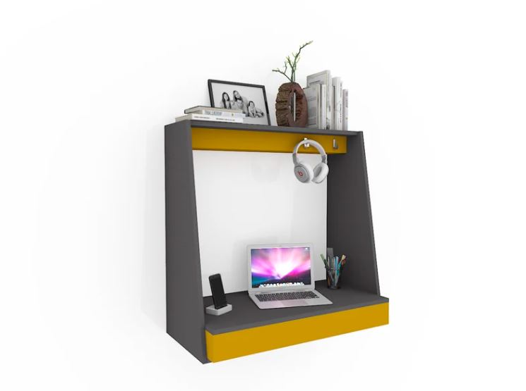 If you want to set up your home workstation in a compact space, this innovative wall mounted study table is a perfect choice. The minimalist design makes it compact without sacrificing the overall ergonomics. Additionally, there are drawers and hooks to provide sufficient space for small items. No matter the space you have, it allows you to work comfortably from home.