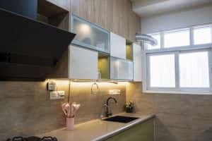 Ayushi talks about her thought process when designing the kitchen, “In addition to the colour scheme, we’ve also taken technical aspects into account. The layout ensures easy access for users to the essentials like the stove, water source, and electrical points.”