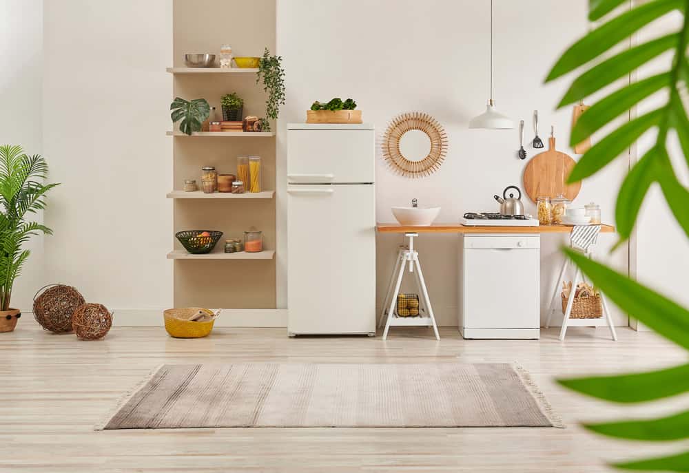 If there is a space crunch in your small kitchen, consider creating functional storage in a closet or nook of the room. A recessed set of drawers can help stash your essential kitchen tools. It can also store all the non-perishable pantry items effortlessly.